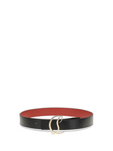 The Logo Belt by Christian Louboutin features minimalist lines and is embellished with a delicately designed gold monogrammed buckle.