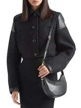 - Detachable, adjustable crossbody leather strap.