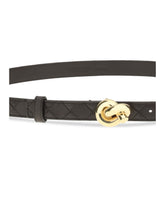 Bottega Veneta's Knot Belt is an iconic accessory that combines elegance and craftsmanship. Made of soft silky calfskin with Intrecciato workmanship, the distinctive symbol of the maison, it is distinguished by a metal knot buckle, a sculptural and sophisticated element that echoes the model's name. The pin closure ensures a secure and adjustable fit. A refined detail to complete both formal and casual looks with an unmistakable touch of style.