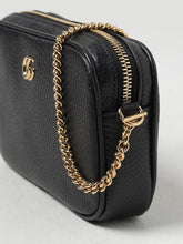 Gucci GG Marmont mini camera bag is made from black pebbled calfskin leather and adorned with golden GG logo.
