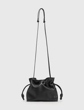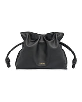 Loewe Flamenco Mini Clutch Bag is crafted from smooth black calfskin leather with signature coiled knots.
