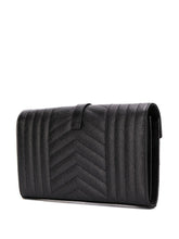 Saint Laurent Envelope Wallet on Chain is crafted from black grained calfskin leather.